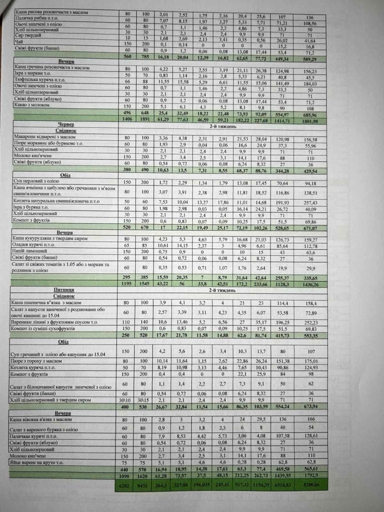 Щоденне меню