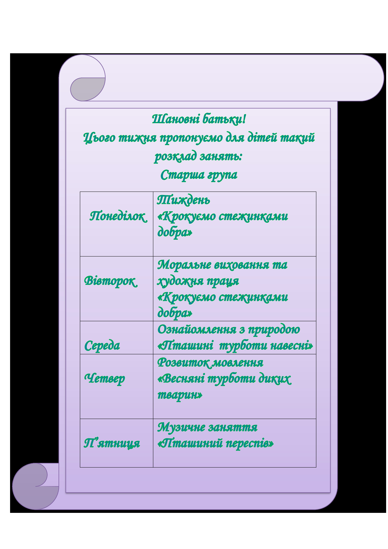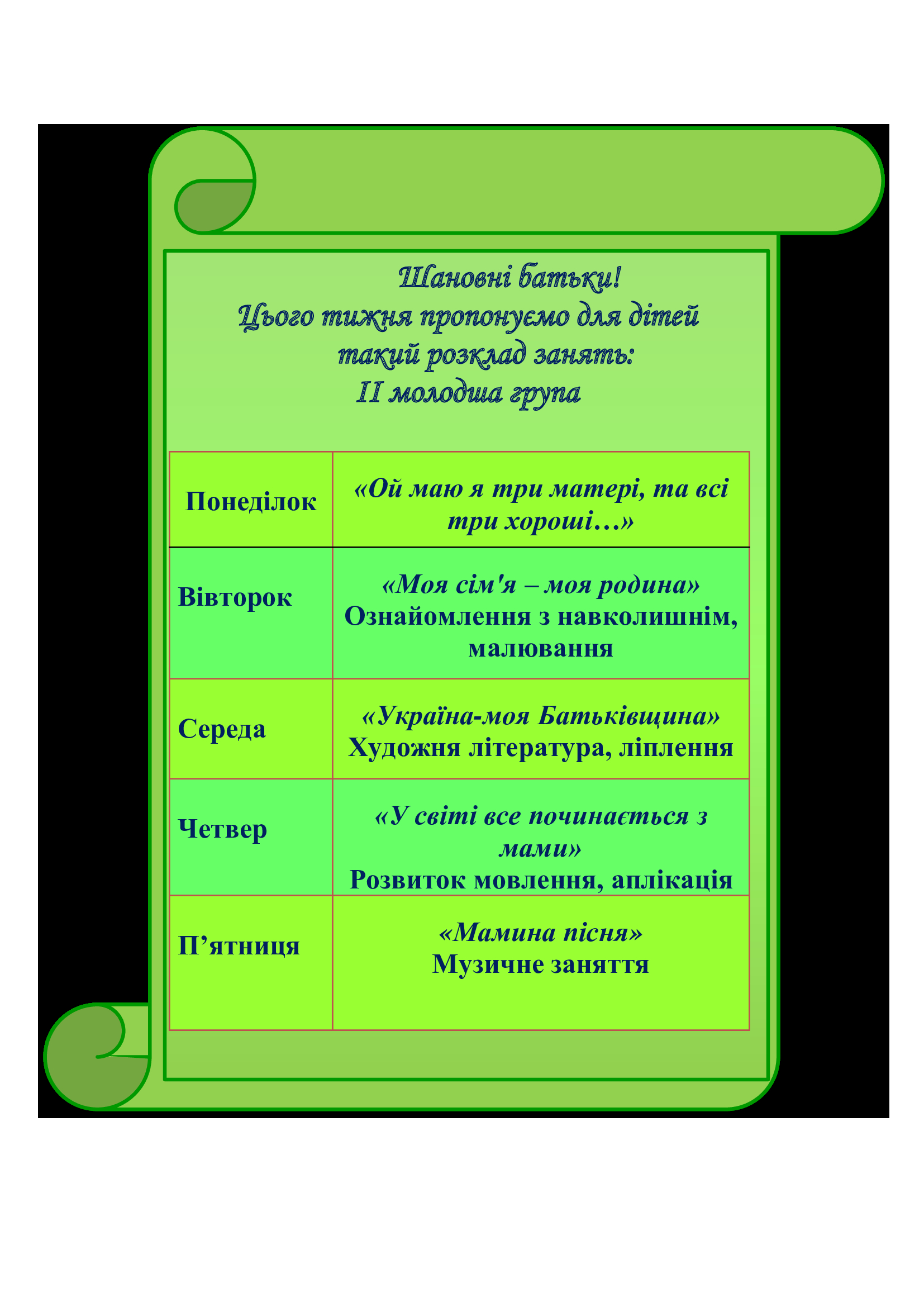 | Понеділок Адміністрація ДНЗ №36 |